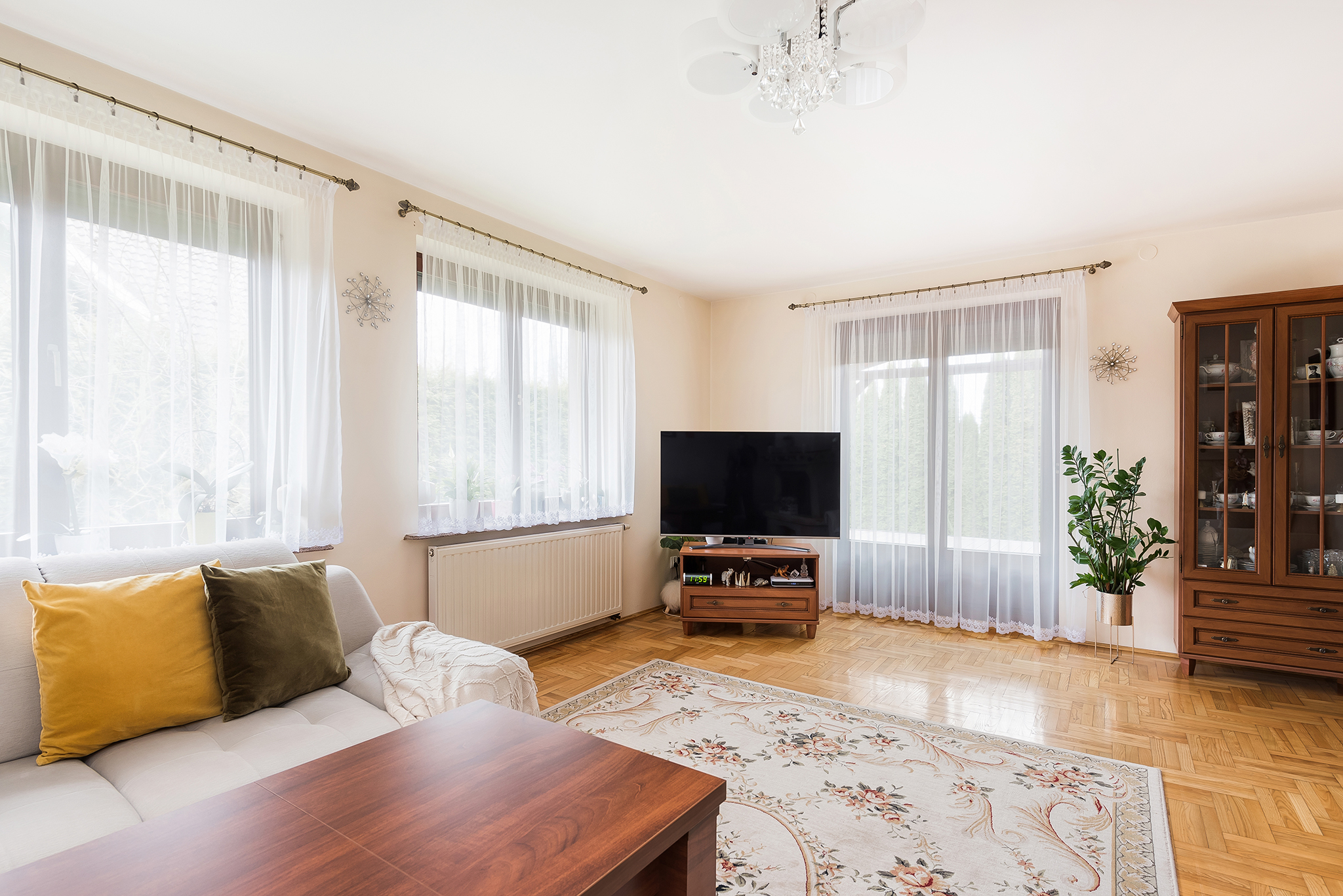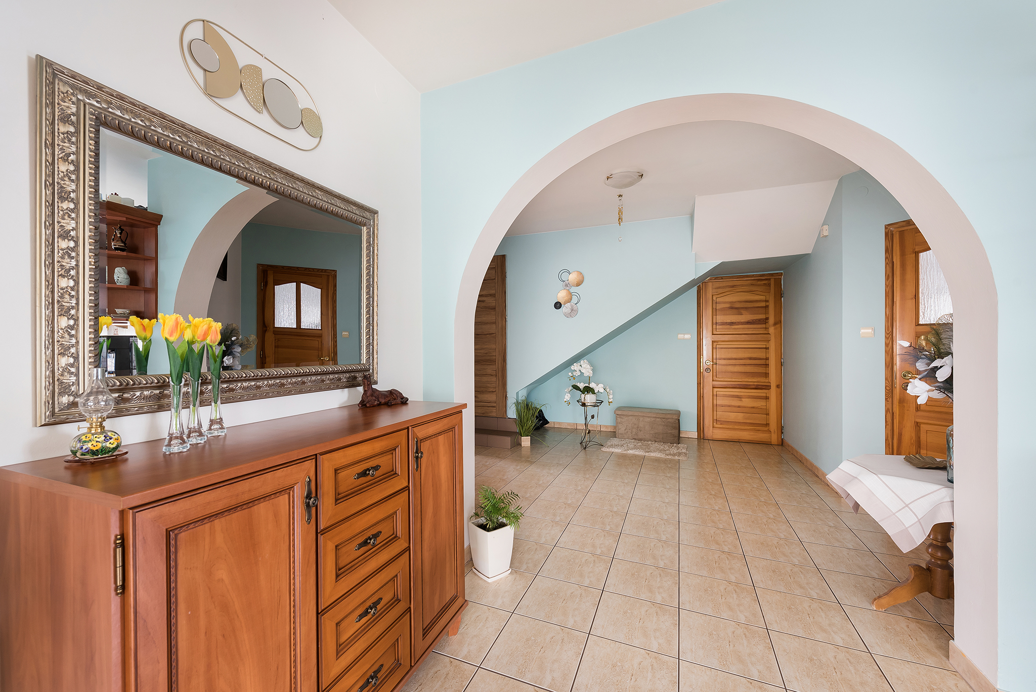 - podłogi na parterze: płytki gresowe i parkiet
